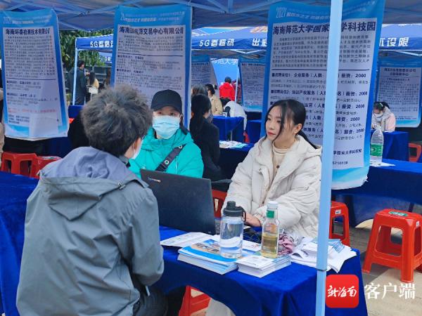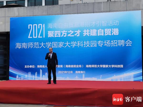 12月19日,“聚四方之才 共建自贸港”2021海南自由贸易港招才引智活动走进海南师范大学国家大学科技园,举办专项招聘会,为高校毕业生和用人单位搭建精准对接平台。当天,近60家省内重点企业现场提供千余个优质岗位,吸引众多求职者前来应聘。
